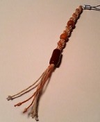 筒状の陶製ビーズと琥珀色のガラスビーズの組み合わせです。