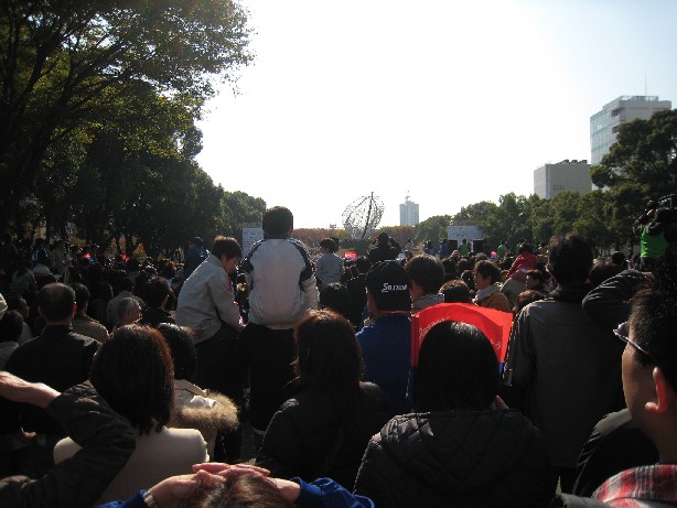 優勝報告会は公園に入れなかった多くの人たちと一緒に楽しむ。