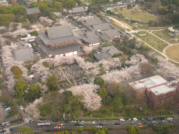 東京タワー大展望台から増上寺周辺の桜風景を見下ろす。なんて素敵な光景なんだ!