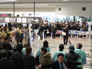高知空港に着いたら何やらやたら騒がしい。 まさか私を歓迎?と一瞬勘違いしてみたけど、すぐ後に到着の羽田からの飛行機に乗って西武ライオンズの選手がキャンプにやってくるらしい。 「松坂クンをひと目でも見たい!」なんて言うミーハー心が作動してしばらく待ったけど、市内行きのバスの出発時間になったので断念しました。