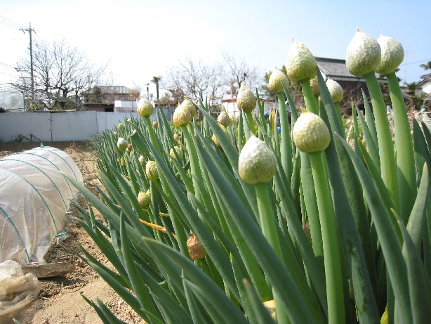 冬の間いろんな料理に利用させてもらったねぎにねぎぼうずが目立ってきました。これがねぎの花になるって知ってた?(2007.3.21撮影)