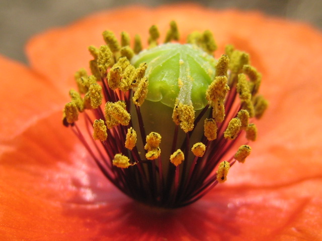 我が家の畑にも侵入してきた、ナガミヒナゲシのおしべ&めしべにズームイン!!(2008.4.13撮影)