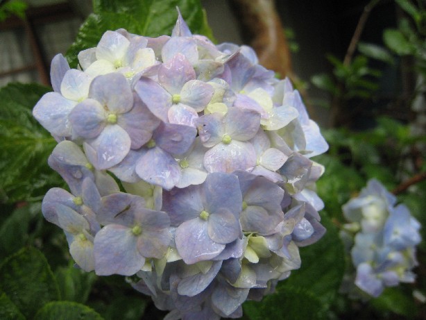 こちらも同じ株から咲いているあじさい。これはとても白っぽい。日にちが経つと色が濃く変わってきます。(2007.6.14撮影)