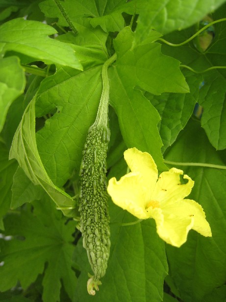 去年落ちたゴーヤの種がまた今年も成長して、たくさん実をつけてくれました!(2007.8.12撮影)