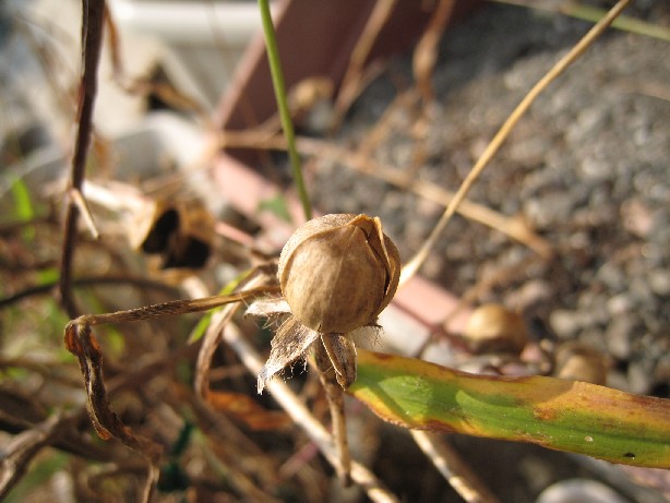 気が付けば、朝顔もすっかり葉が落ちて種だけになってしまってました。(2007.11.11撮影)