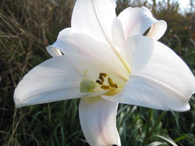 雑草がいっぱい生えた土手にぽつんと、でも凛々しく咲いていたタカサゴユリ。(2007.12.1撮影)