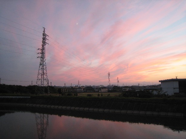 陽が落ちるのが早くなったよな〜綺麗な夕焼け空を職場近くの橋の上から。(2007.10.17撮影)