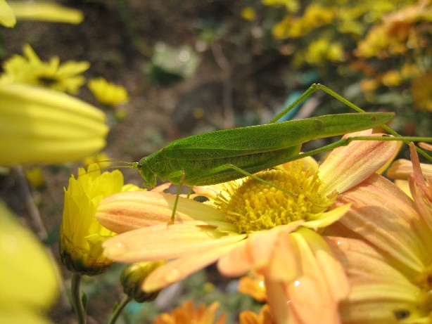 もうすぐ冬が来るというのに、まだ頑張っているスイッチョンさん。ひなたぼっこしてんのかな。(2007.11.11撮影)