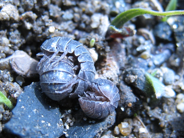 苦手な人、ごめんなさい!!花壇の雑草を抜いたら、ダンゴムシさんがウジャウジャ現れました。(2008.4.19撮影)