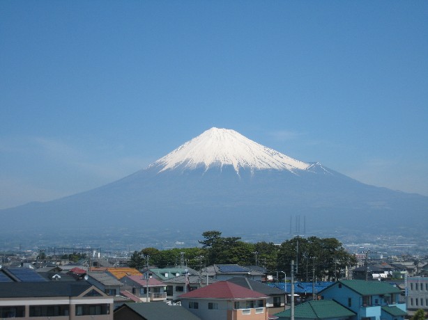 新幹線から見えた富士山。車掌さんも思わずアナウンスしてしまうほどの美しさ…まさに日本一!(2007.4.29撮影)