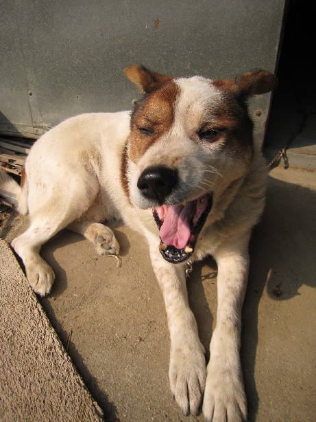 ひなたぼっこ中の八兵衛君。あまりの気持ちよさにあくびも出てしまうわな。(2007.11.11撮影)