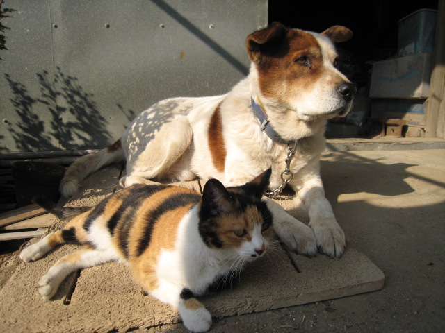 大好きなみけさんが来てくれて、一緒にひなたぼっこ♪ハチ君、良かったね。(2007.12.8撮影)