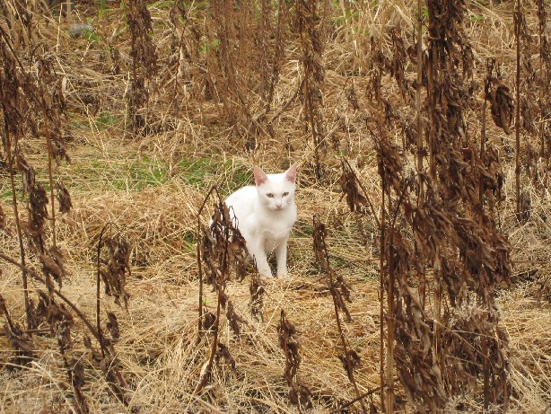 ウチの最寄り駅の近くにいるまっ白にゃんこ。人慣れしてるようなんだけど、警戒心のがまだ強いかな。(2007.9.2撮影)