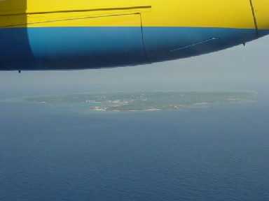【 島全景 】 飛行機からこの島の姿が見え ると懐かしい気分になります 5度目にして初めて島全体の 姿を撮ることが出来ました 機体の一部が写ってるけど… |