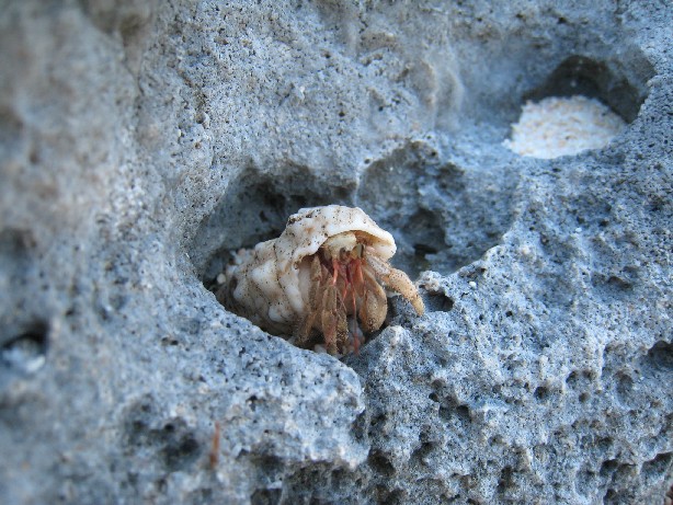 宿に着いて、早速メーラビビーチへ。ヤドカリたちも歓迎!?