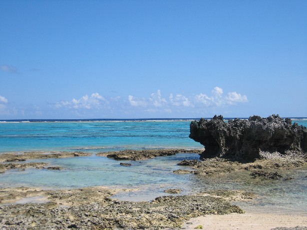 海の青がたまらなく綺麗な寺崎海岸。大潮の干潮で岩場がいっぱい出ている!磯遊びには最高の場所♪